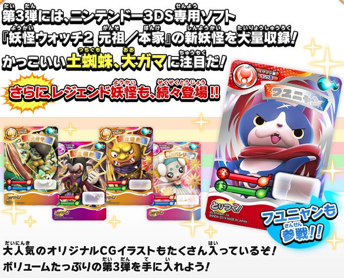 妖怪ウォッチとりつきカードバトル第3弾は10月10日発売予定!