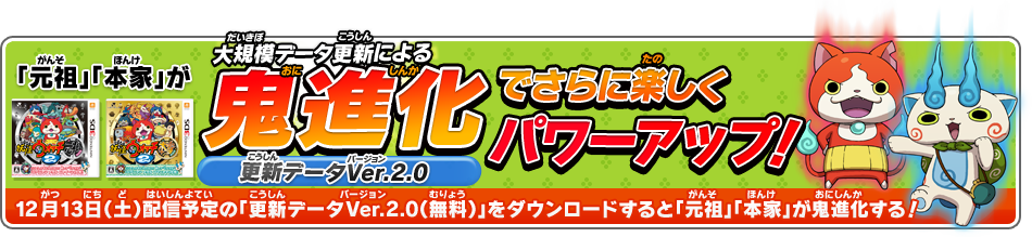 なんと妖怪ウォッチ2真打発売日に合わせて元祖・本家が鬼進化(Ver.2.0)する!